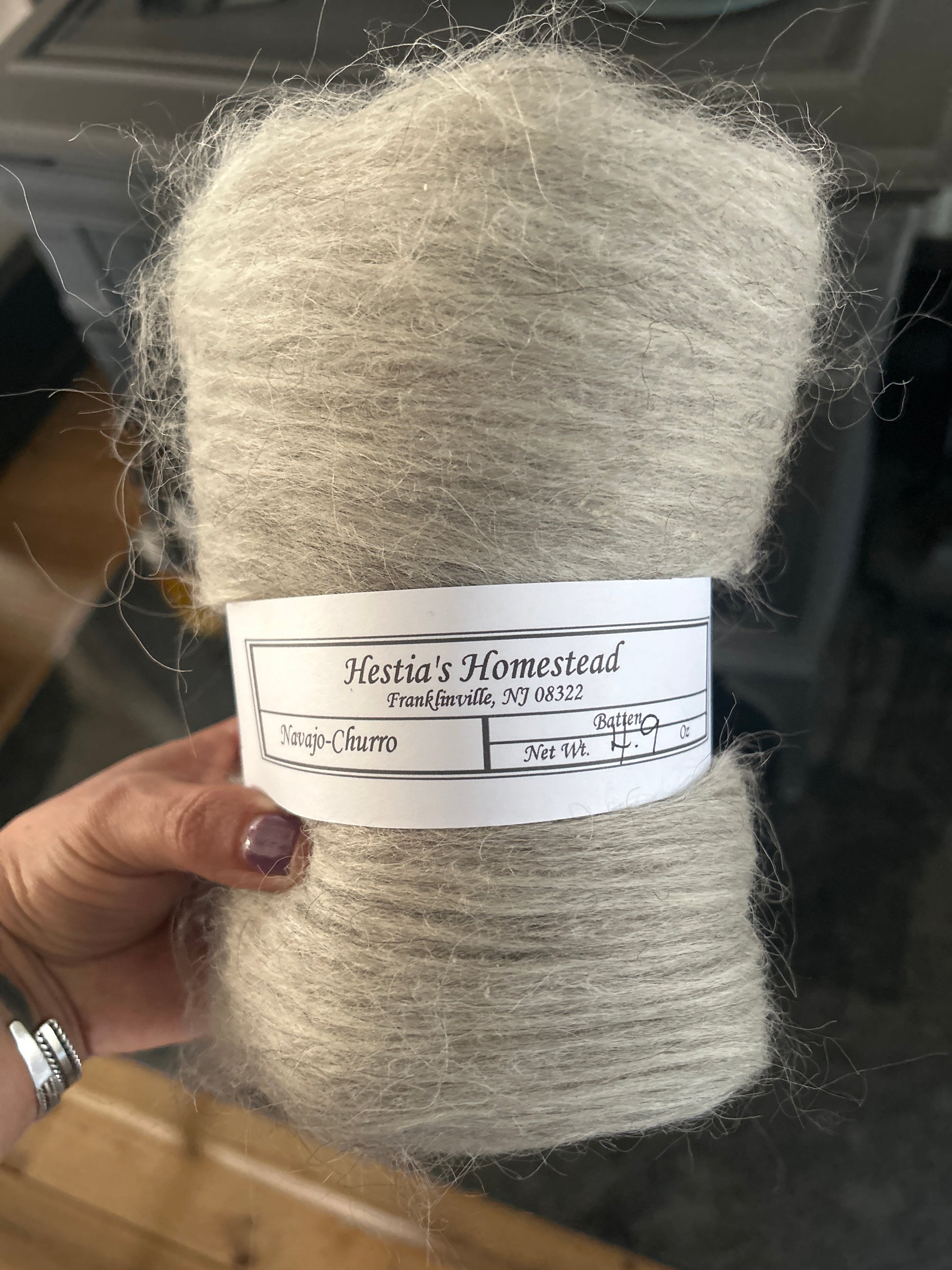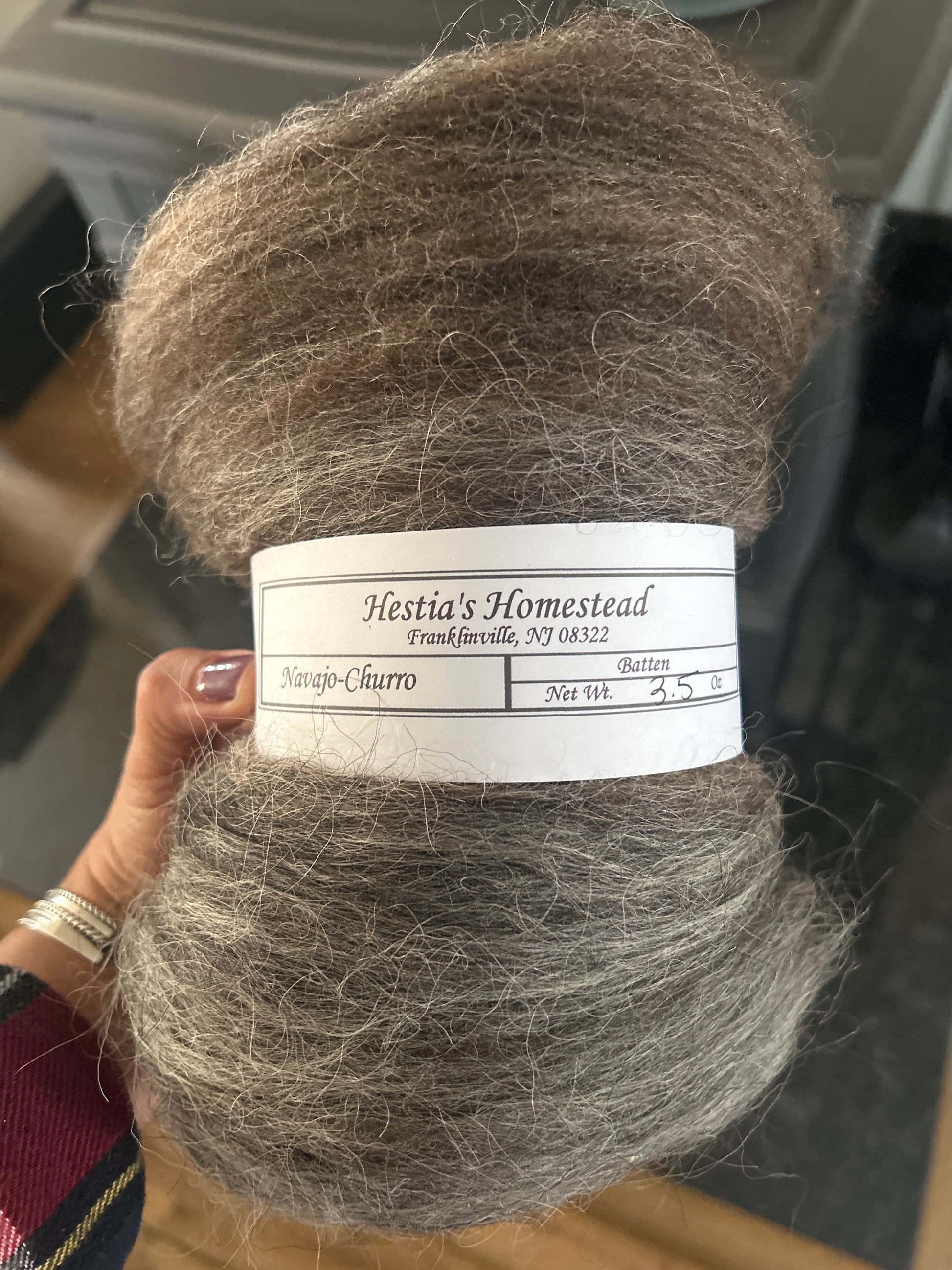 Navajo-Churro wool. Batten have very little vegetation & are approximately 3.5 - 4.0 oz. All natural colors no dies.